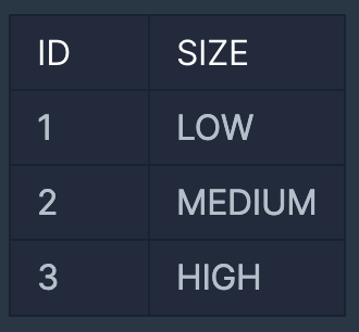 대장균 개체 ID(ID) 1,2,3 에 대해 개체의 크기는 각각 17, 150, 4000 이므로 분류된 이름은 각각 'LOW', 'MEDIUM', 'HIGH' 입니다. 따라서 결과를 개체의 ID 에 대해 오름차순 정렬하면 다음과 같아야 합니다.